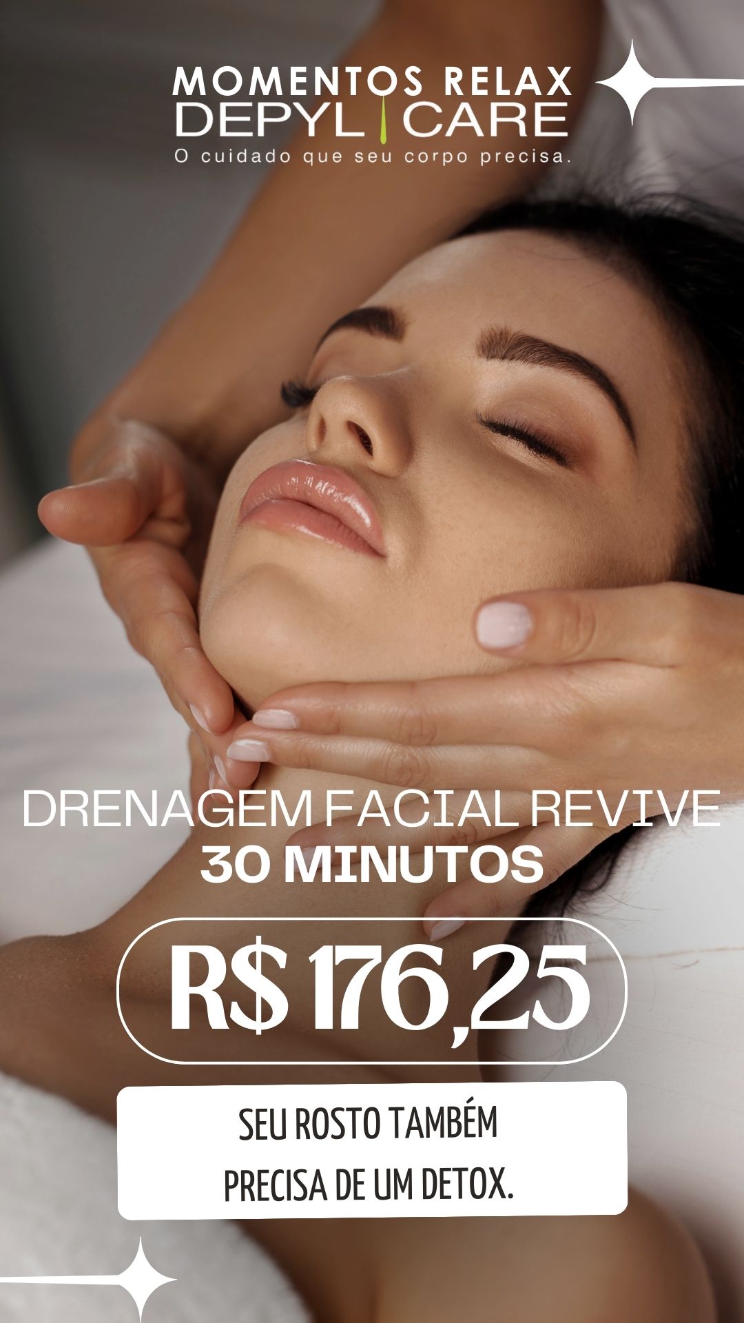 Seu rosto também precisa de um detox. Este protocolo exclusivo é indicado para quem sente o rosto inchado, com aparência cansada, olheiras marcadas ou pós-procedimentos estéticos. A técnica ativa a eliminação de líquidos e toxinas, estimula a circulação e promove um efeito lifting natural, deixando a pele mais leve, iluminada e descansada. ? Ideal para eventos, pós-viagens, TPM ou dias de cansaço facial — com resultados imediatos.