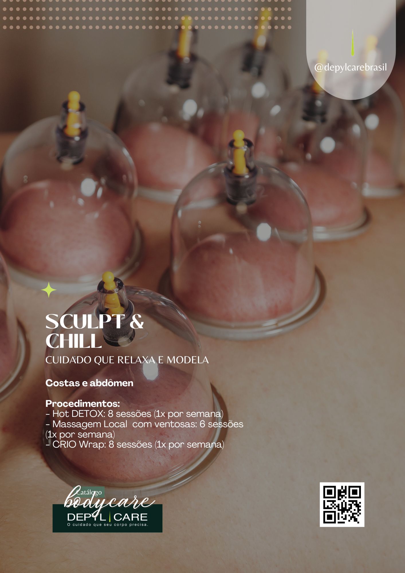 O Sculpt & Chill é um pacote especialmente desenvolvido para quem deseja esculpir e modelar as regiões do abdômen e das costas, com foco em contornos mais definidos e redução de medidas. Combinando três tratamentos inovadores, você vai vivenciar uma experiência única de bem-estar e transformação corporal:
