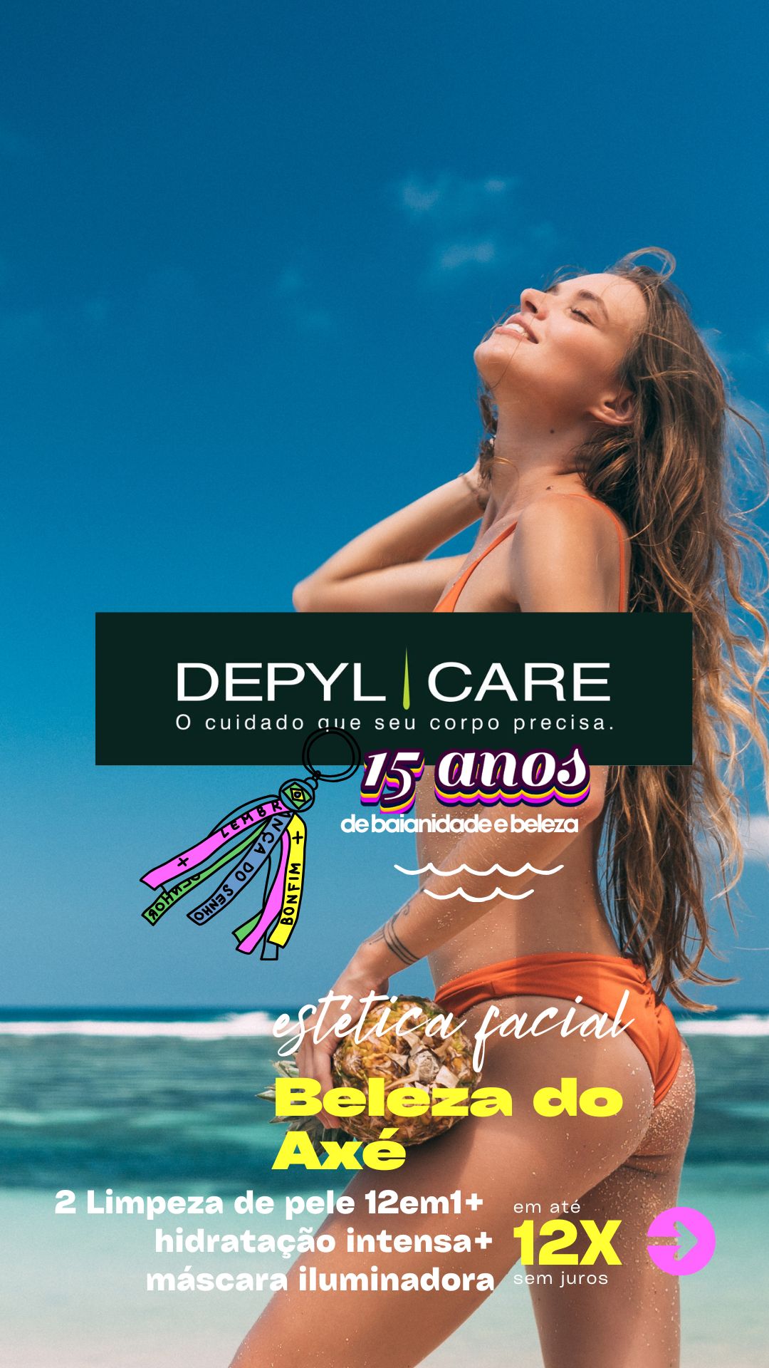 Em homenagem aos 15 anos de história, a DEPYL CARE apresenta o pacote "Beleza do Axé". Um tratamento completo de estética facial unissex, que combina 2 Limpezas de Pele 12em1, hidratação intensa e uma máscara iluminadora. Um cuidado que revigora e ilumina a sua pele com toda a energia do Axé!