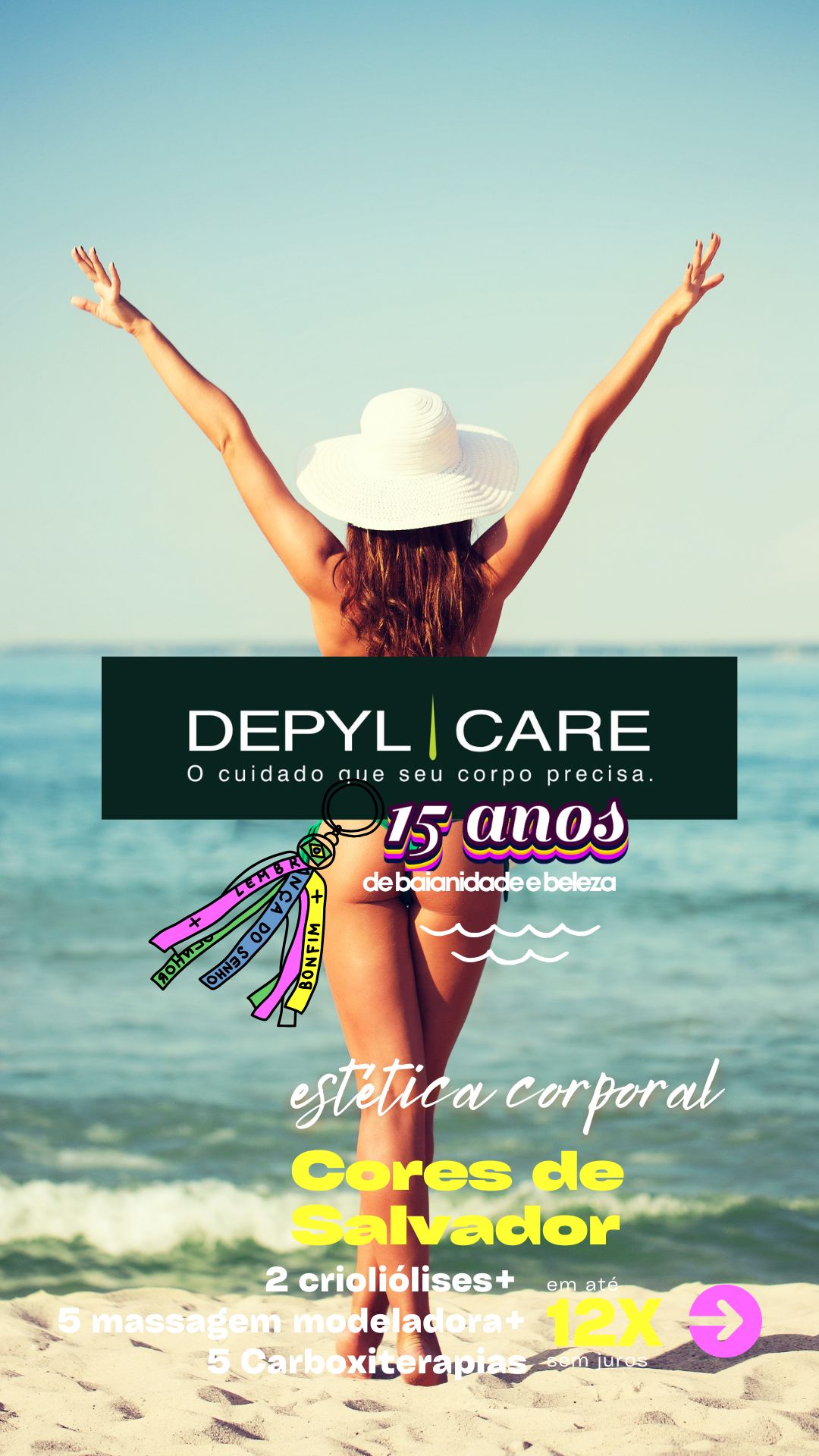 Em celebração aos 15 anos da DEPYL CARE, o pacote "Cores de Salvador" oferece uma combinação exclusiva de tratamentos estéticos corporais para redefinir sua silhueta. O pacote inclui 2 sessões de criolipólise, 5 sessões de ModelTurbo (massagem modeladora exclusiva) e 5 sessões de carboxiterapia, proporcionando resultados visíveis e duradouros para um corpo mais esculpido e tonificado.